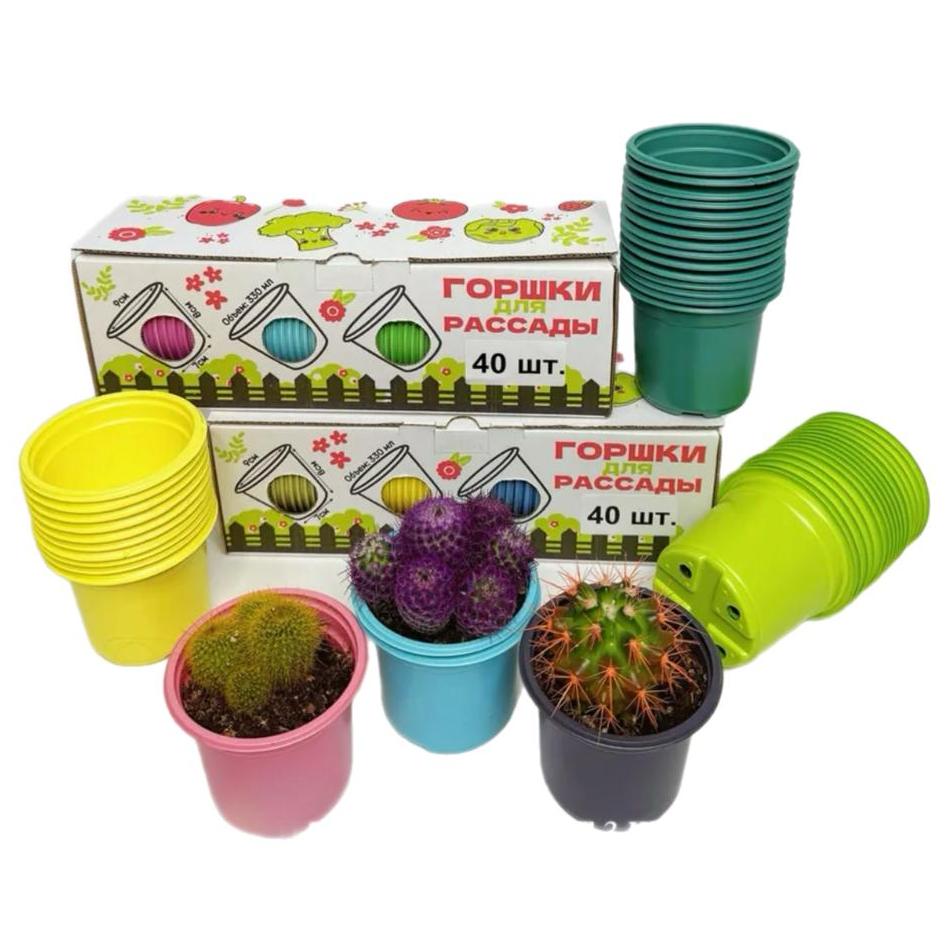 Горшок круглый для рассады (размер Ø 9 х h8) 330 мл,цвет в ассортименте, 40 шт арт.4673748689606